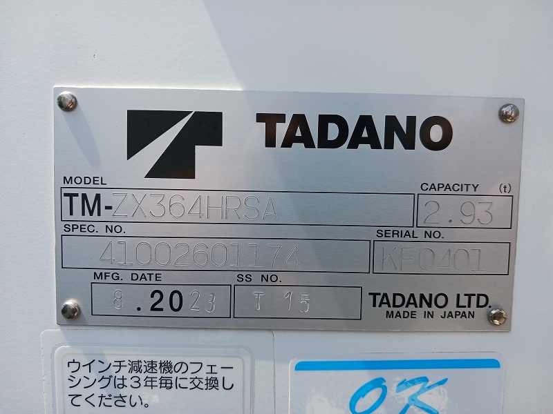 特記事項 Nox適合 タダノ(TM-ZX364HRSA) クレーン白塗装
